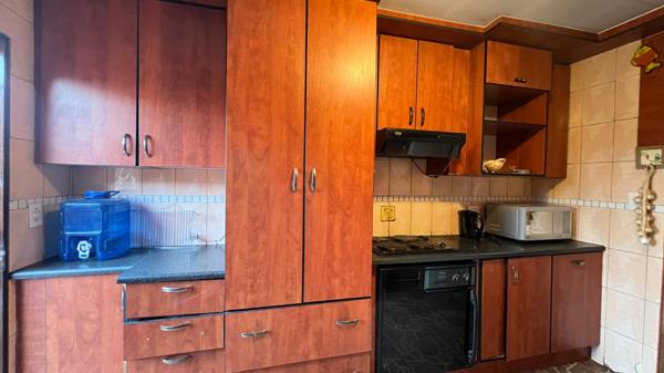 The kitchen is well-fitted with built-in cupboards and a stove, giving you everything you need to prepare delicious meals while still being part of the family conversations happening in the living area.