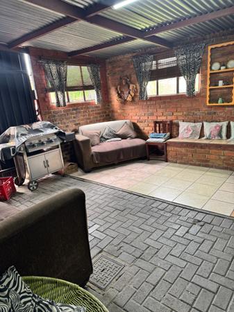 Step outside to discover the covered stoep, an ideal spot for enjoying quality time with loved ones regardless of the weather, complete with a built-in braai, offers the perfect setting for hosting friends and family.