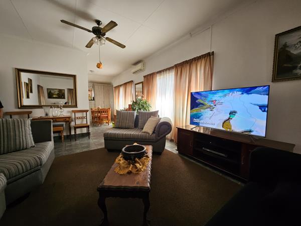 This beautiful family house offers 3 bedrooms, 2 bathrooms, a study and office space, lounge, dining room, kitchen, washing room and outside a beautiful lapa with a jacuzzi and build in braai. 4 Garages, carports, 2 entrances and a beautiful Flatlet . Walking distance to school.