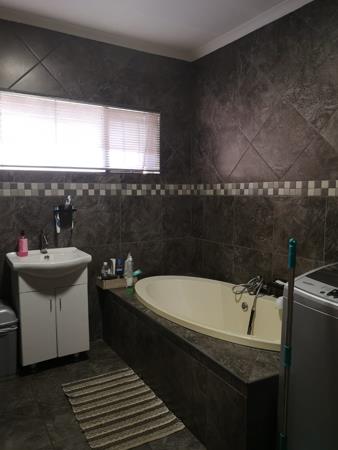 A spacious guest bathroom includes a large bathtub, toilet, and basin. The lounge is perfect for quality family time, and the modern kitchen boasts ample built-in cupboards for all your storage needs.