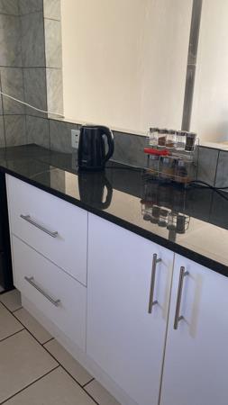 1 Kitchen fitted with built-in cupboards The newly renovated kitchen is fitted with built-in cupboards and modern countertops, a dedicated space for a microwave oven and a space to accommodate a large/ double door refrigerator.