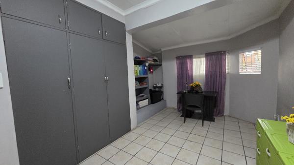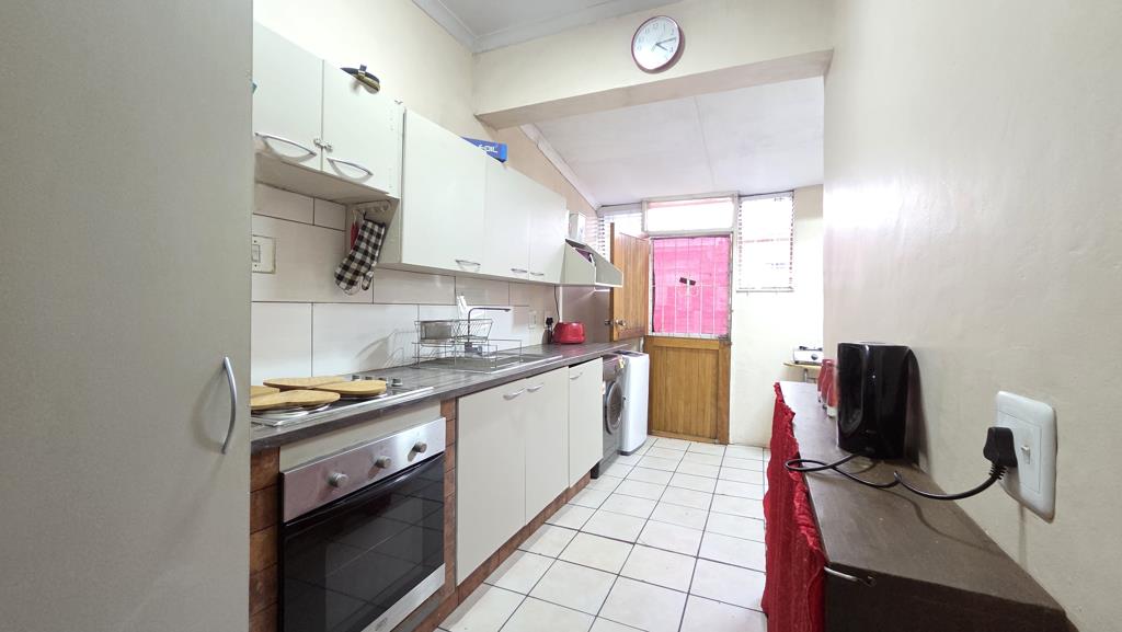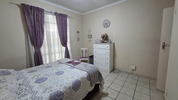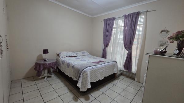 The home has an open-plan kitchen, lounge, and dining area. The kitchen is well-designed with cupboard space, a built-in sink, stoveoven, and space for your fridge. Both bedrooms are fitted with built-in cupboards, while the bathroom includes a sitz-bath, basin, shower and toilet.