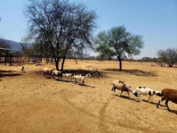 Access Gate, Fence, Paving, 3 x Boreholes, (2 x Equipped 2 000L/H, 500L/H), Windmill water sources, Security gate, Irrigation system, Smoking Allowed, Wheelchair Friendly, Prepaid, Built in Braai, Driveway, Steel Structure, Inverter, 3 x Batteries, Electrical Geyser, Electricity of Tshwane, 4 x Solar Panels, Gas Geyser, Pave way, 4 x Water Tanks, Sprinkler System, Inland dam, Goat Cages and Chicken coops.