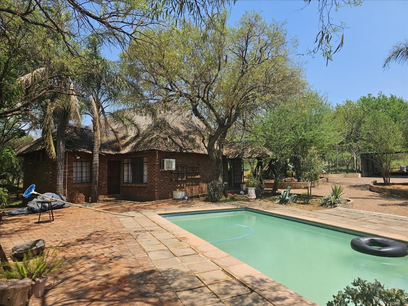 Set along 500 meters of main road frontage, this picturesque property welcomes you with a thatched-roof homestead brimming with character and charm. The main house features three spacious bedrooms, a full bathroom, and a cozy loftperfect for a home office, reading nook, or extra guest space. Rustic finishes and natural textures create a warm, inviting ambiance that complements the surrounding bushveld beauty.
