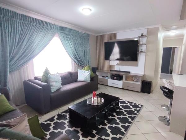 Experience modern elegance and comfort in this beautifully maintained 3-bedroom home, perfectly situated in a secure, gated community. The property boasts exquisite finishes throughout, with three spacious bedrooms featuring built-in cupboards and two beautifully fitted bathrooms, including a luxurious main en suite.