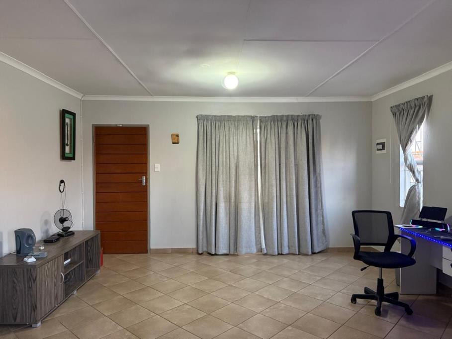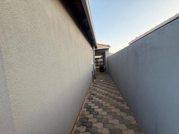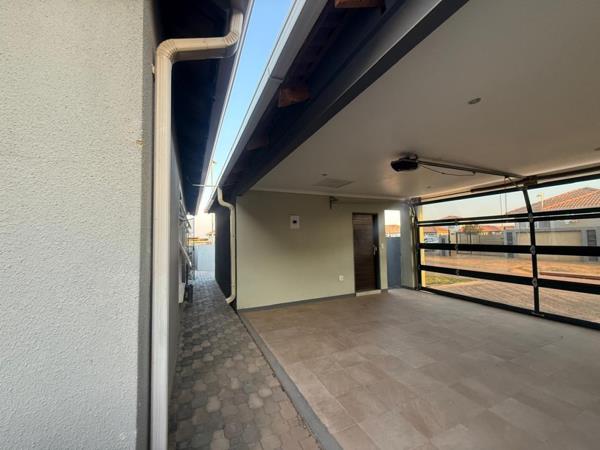 Welcome to this stunning 3-bedroom, 2-bathroom family home that blends comfort, security, and convenience. Boasting a modern design, the property features a double aluminum garage, along with an additional standard room and storage room that can easily be converted into an extra bathroom . A highlight of this home is the dedicated Braai area, perfect for hosting family gatherings and entertaining guests.