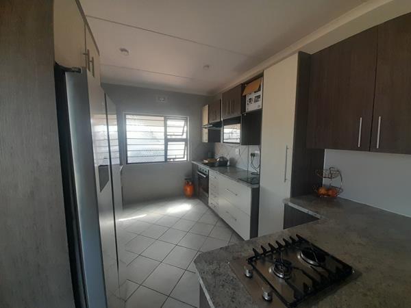 When walking through the front door, one enters a spacious living area. Between the living area and the kitchen is an area that can be used as a dining area. One can enter the garden through a sliding door that is fitted with a security door.