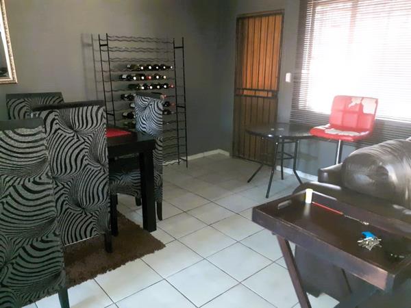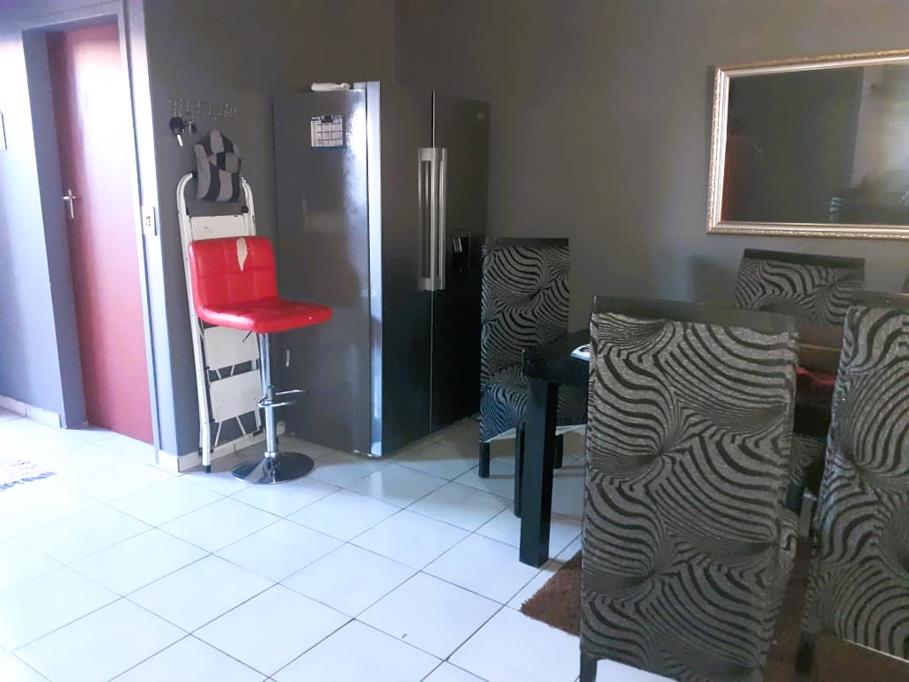 An inviting open-plan layout where the kitchen, lounge, and dining areas flow effortlessly together, boasting neat tiled floors for easy maintenance.