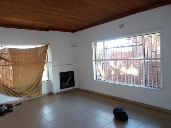 Spacious four bedroom house which can easily be converted to a five bedroom house with a very big lounge for an open plan dining room . Four bedrooms tiled with old cupboards that needs your taste. Main bedroom is with ensuite, kitchen with old built in cupboards, outbuilding with laundry , servants room, outside toilet and double garage. This house is in a massive erf size 1200 square meters with borehole. The house needs attention, it''s doable though.