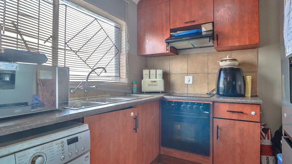 Two Bedrooms are accompanied by 1 Bathroom offering a Bath, Basin & Toilet. The Kitchen is well designed with ample Cupboard Space, an Electrical Stove with Electrical Oven.