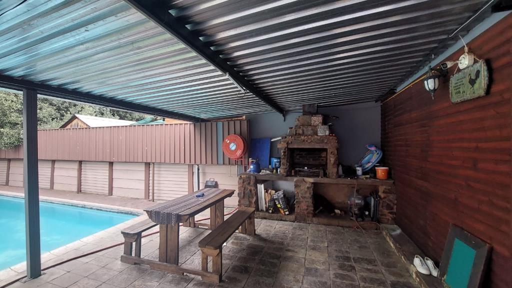 Outside, the property offers carports for two vehicles, a borehole for water savings, a refreshing swimming pool, and two Wendy houses for extra storage or workspace.
