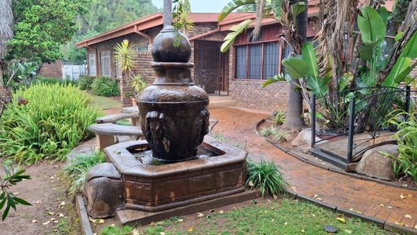The property features a beautiful garden with a water feature, creating a peaceful ambiance that complements the luxurious lifestyle.