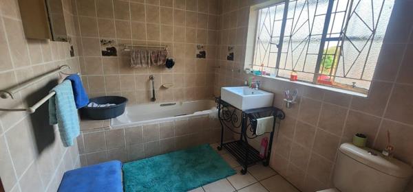 Accommodation includes three well-proportioned bedrooms, each fitted with durable tiled flooring. One bedroom features practical floor-to-ceiling built-in wardrobes, maximizing storage capacity. The additional bedrooms offer flexible layouts, suitable for family members or as a home office. The property benefits from two fully tiled bathrooms, ensuring convenience. One bathroom is equipped with a built-in bathtub, basin, and toilet, catering to essential needs.