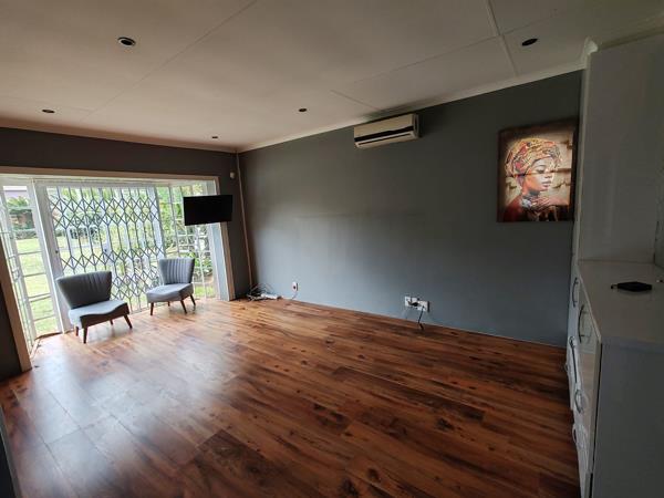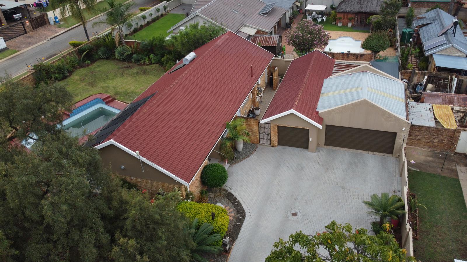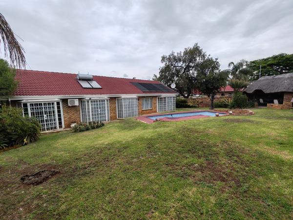 The home features an open-plan lounge, dining area, and kitchen fitted with a gas stove and a separate scullery. A JoJo tank is connected to the borehole, ensuring a reliable water supply, while a solar geyser helps reduce electricity costs. The garden benefits from computerized irrigation for easy maintenance.