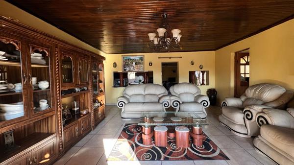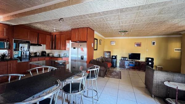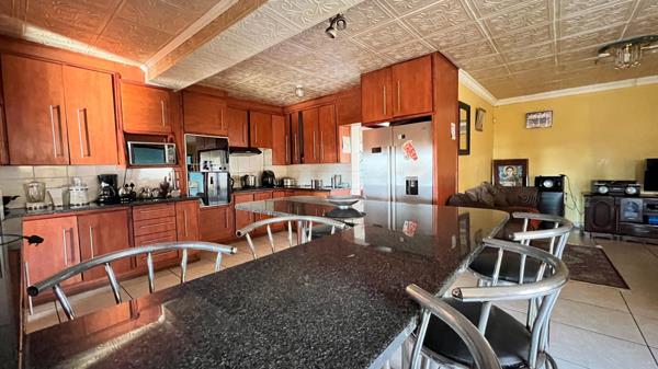 Living areas are spacious and inviting, featuring an open-plan lounge and dining area that flows into the kitchen, which is neatly fitted with built-in cupboards. For convenience, the property boasts two fully equipped kitchens, offering excellent functionality for large families or dual living arrangements. A cozy TV room adds a perfect spot for family movie nights or relaxation.