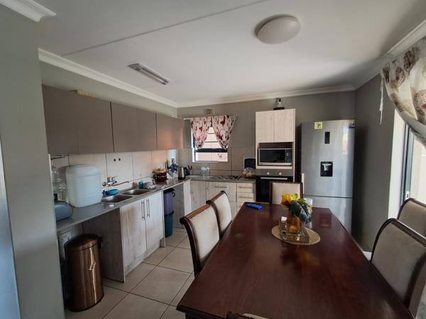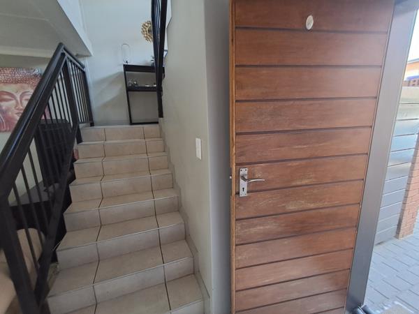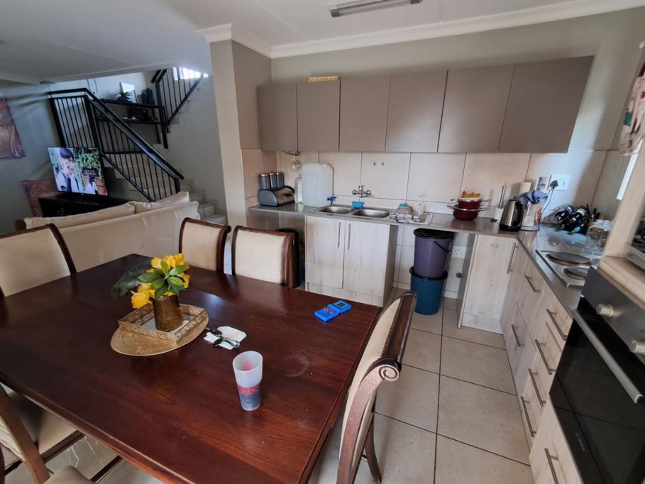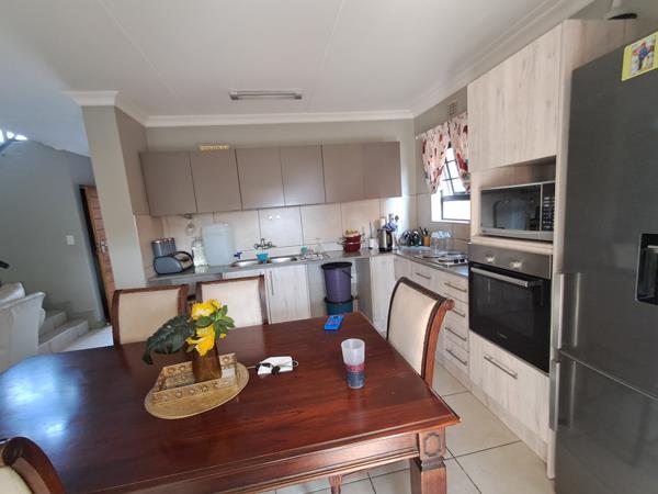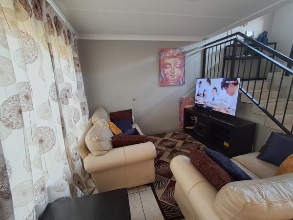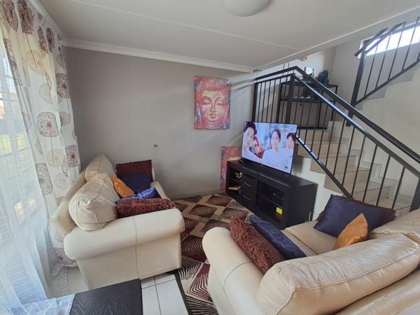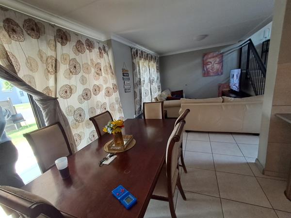 Discover modern living in this inviting 3-bedroom, 2-bathroom townhouse, perfectly situated within a secure lifestyle estate. The property boasts a contemporary brick exterior with stylish black-framed windows, offering excellent kerb appeal. Enjoy outdoor moments on the covered, tiled patio, which extends to a private lawn area, ideal for relaxation or entertaining. The thoughtful design includes security bars on ground floor windows, enhancing peace of mind within this well-maintained complex.