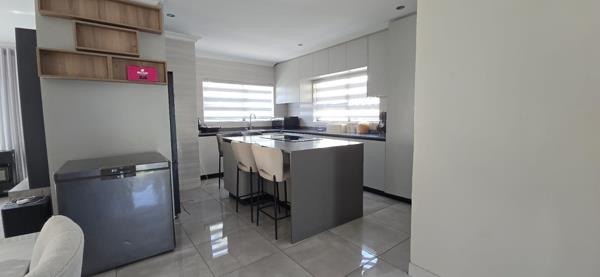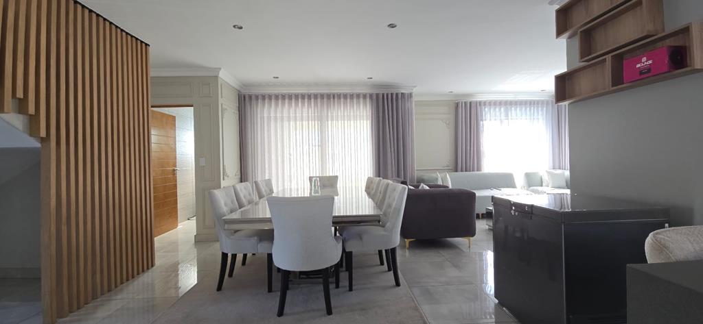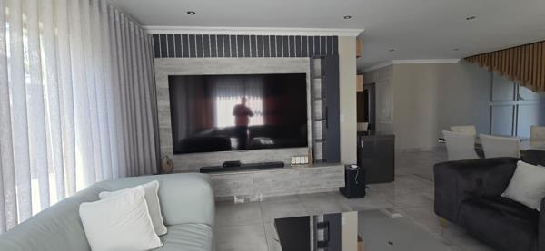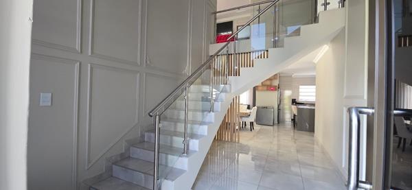 This striking double-storey home is designed by a developer who truly prioritized comfort and elegance, situated in a secure and well-maintained estate. From the moment you arrive, the bold architectural lines and pristine finishes make a powerful impression. A grand entrance welcomes you with soaring ceilings, a modern staircase, and elegant panelled walls that set the tone for the sophistication within.