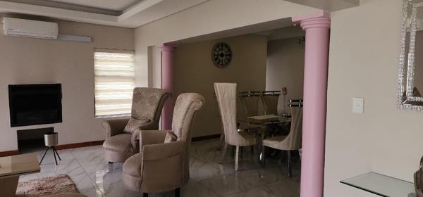 This stunning home offers luxury, space, and security in a sought-after estate. Featuring 3 spacious bedrooms, 2 modern bathrooms and a guest toilet. The main bedroom boasts a dressing room and en-suite bathroom. The ultra-modern kitchen is well-equipped and has a separate scullery, and it seamlessly flows into the open-plan dining room, lounge, and indoor braai roomperfect for year-round entertaining.