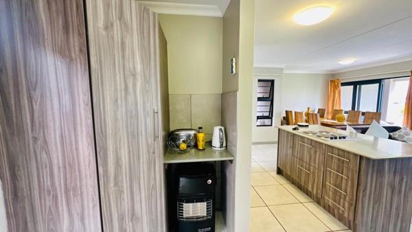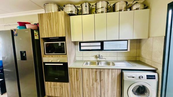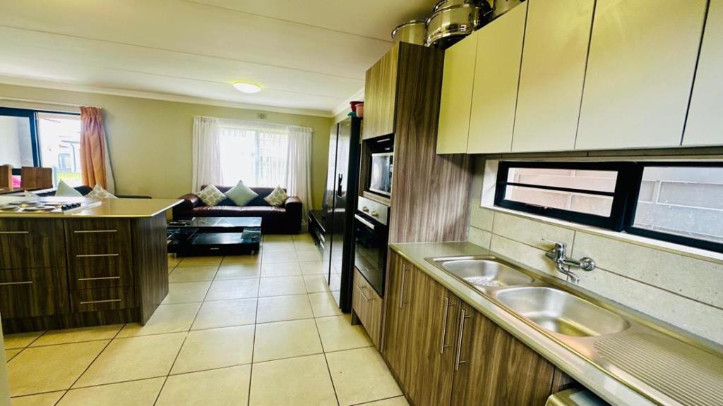 Discover this Fresh, stylish and modern double-story 3-bedroom home, perfectly situated in a secure, gated estate with 24-hour security. Thoughtfully designed for comfort and convenience, the main bedroom features a private ensuite complete with a bath, shower, handbasin, and toilet. The main upstairs bathroom offers a shower, handbasin, and toilet, while a guest bathroom downstairs adds extra practicality with a handbasin and toilet. This energy-efficient home includes a solar geyser and a ready-to-use inverter system with batteries, ensuring uninterrupted power, while both electricity and water are prepaid for added control and ease. The property boasts a beautifully spacious gardenideal for outdoor relaxation or entertaining. Stylish finishes, practical features, and peace of mind all come together in this modern family haven.