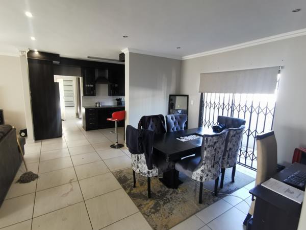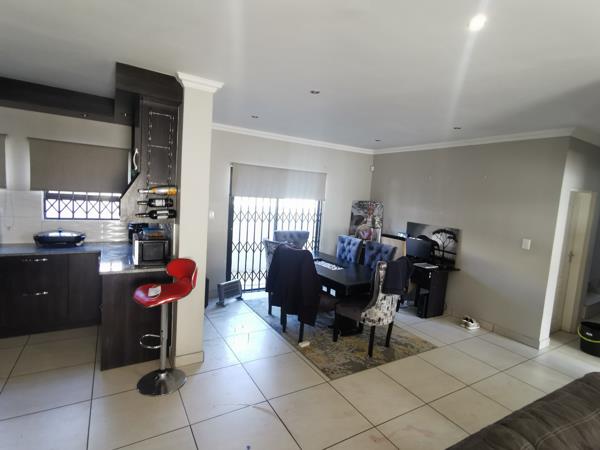 Spacious 3 bedroom house in secure Lifestyle estate. a Real comfortable family house with lounge, tv and braai room, dining room and modern kitchen and scullery. On the ground floor a guest toilet and basin. First floor 3 spacious bedrooms, a second modern bathroom and on suite to main bedroom. The estate is well secured with 24 hour security and play park for children, swimming pool and communal braai and entertainment areas. Yard 500 m2 with double garage. Close to most amenities, walking distance from Zambezi shopping complex, mediCross, Spar and many more. School and nursery school within 1.1 km. Close to N4 and N1 highways. The house needs some exterior painting. Offers will be considered.