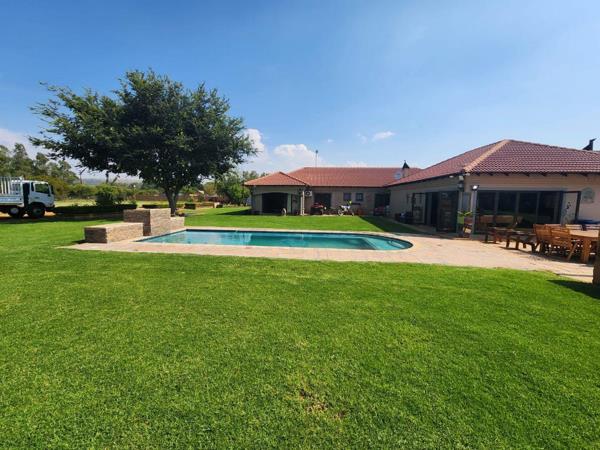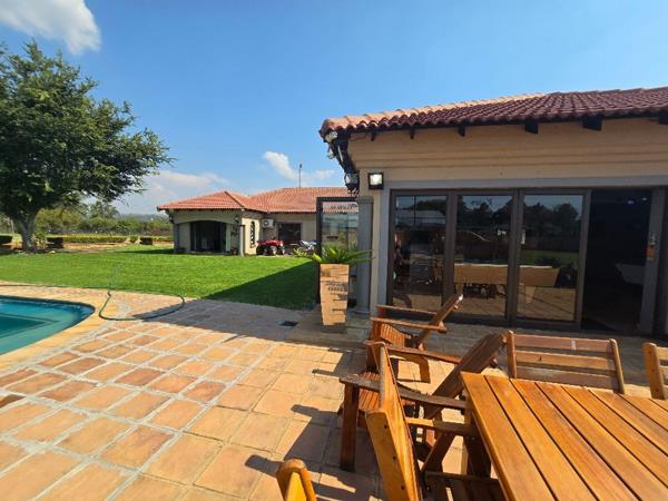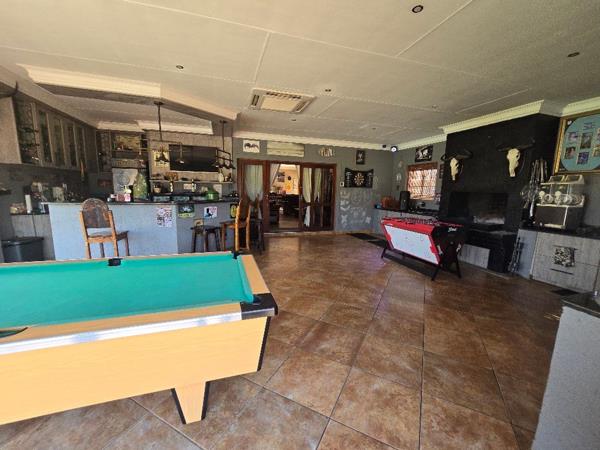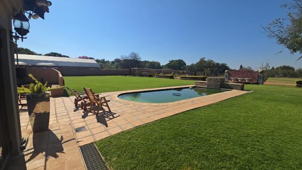 Entertain effortlessly with a built-in gas braai, bar, traditional braai, and an outdoor boma for fireside gatherings. Ample space allows for livestock or other pursuits, all set amidst a stunning, well-manicured garden.