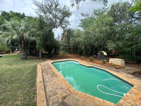 Two strong boreholes supply ample water, supported by 15-liter water tanks. Additional features include a large 132-square-meter lapa, a swimming pool, and a dedicated braai area, perfect for entertaining. The property also includes a workshop, a staff room, two garages, and single-phase electricity. Combining modern convenience with spacious living, this home is a perfect retreat with excellent security and off-grid capabilities.