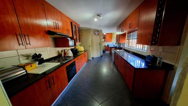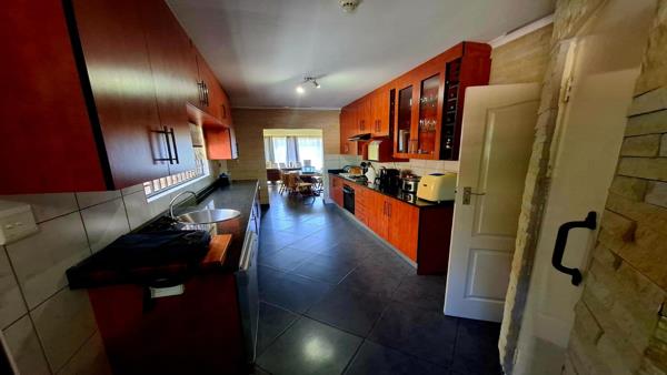 This property offers an Entrance Hall leading to the massive Lounge on one side and the dining room that can fit an 8-seater table on the other side with beautiful slate floors, all set in an open plan. The kitchen offers lots of built-in cupboards with granite counter tops, a gas hob, under counter oven, an extractor fan, a separate scullery and a separate laundry room.