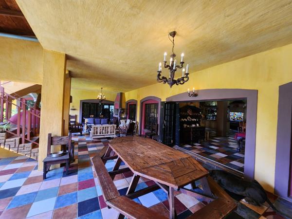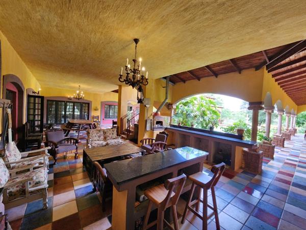 As you enter the residence, you will find a spacious walk-in pantry and a walk-in fridge, both catering to your culinary needs with convenience. The presence of a pizza oven elevates your outdoor dining options, adding a touch of sophistication to your gatherings. Inside the home, a cozy fireplace adds warmth and charm to the living space. The property offers secure parking for up to four vehicles within its garages, along with ample undercover parking for added convenience. The inviting swimming pool provides a refreshing escape during warm days, complemented by the tranquility of a natural dam.