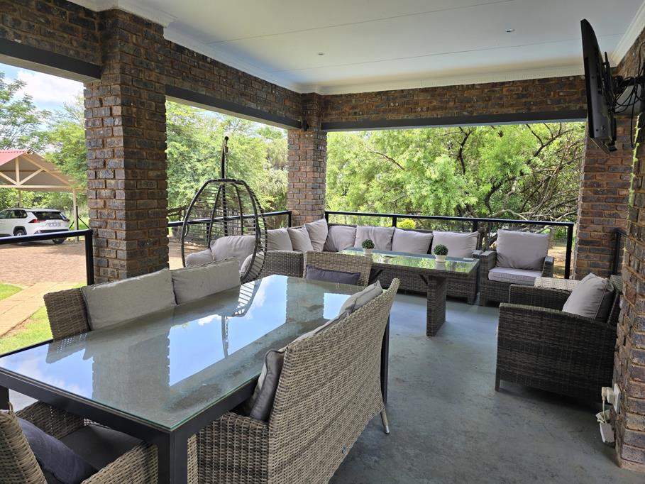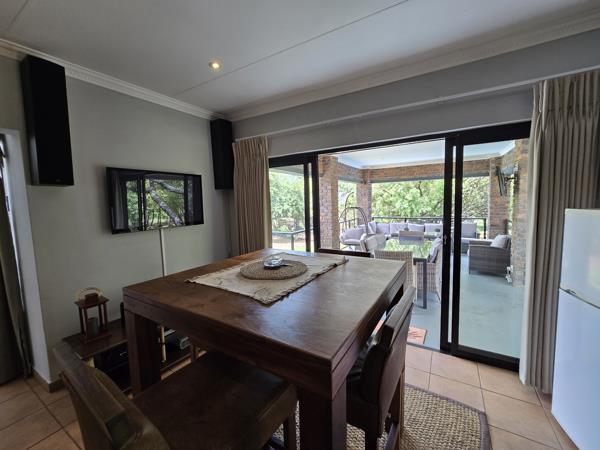 The house features 4 generously sized bedrooms and 3 full bathrooms, 2 of which are en-suite. Two lounges and two dining areas provide ample space for family living and entertaining. The heart of the home is the spacious central kitchen, complete with a separate scullery and a walk-in pantry. Step outside to the entertainment patio, where you can unwind while taking in the stunning natural surroundings.