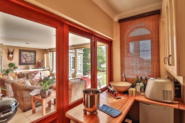 The entertainment area is spacious, has great sun exposure, has direct access to the pool, has a built-in braai and is adjoined by a closed-off bar area.
