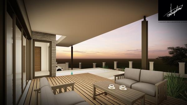 The property will offer a covered patio area with a built-in braai, a boma area and a swimming pool with a lovely garden to look over. There is another courtyard/patio area around the back of the house as well.