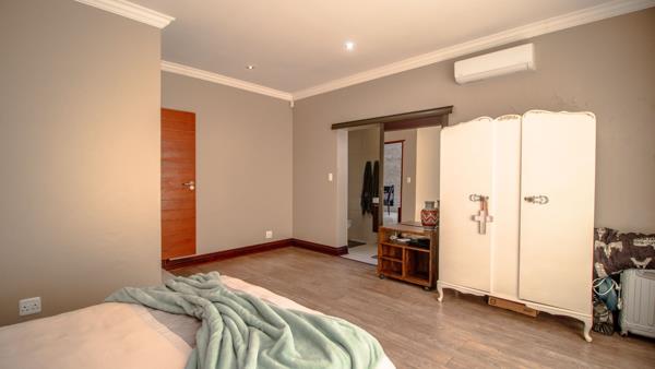 The main home features four generously sized bedrooms, a welcoming lounge, and a dining room that flows into a substantial indoor entertainment area, complete with a built-in braai and fireplace, as well as a separate study. With four bathrooms and two garages, along with plenty of parking space, convenience is a top priority. The ground floor includes a guest bedroom with its own ensuite bathroom, while the upper level boasts three additional bedrooms, two more bathrooms, and a cozy pajama lounge.