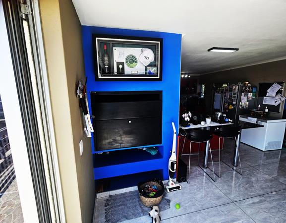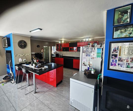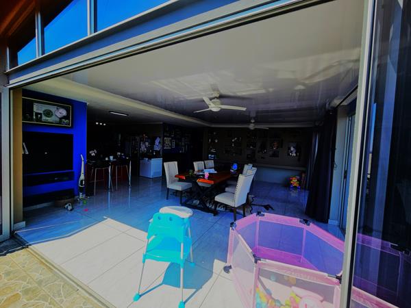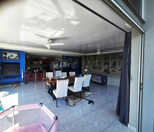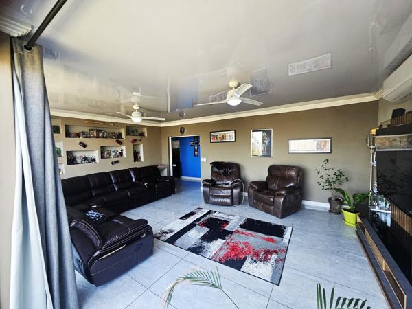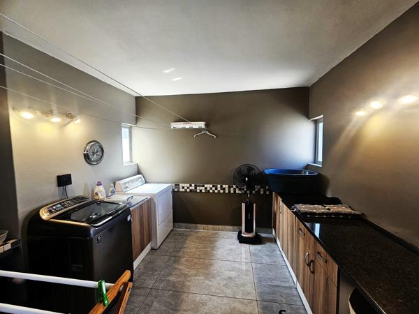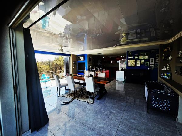 Step into a generous living room featuring a built-in braai, ideal for hosting gatherings. The open-plan kitchen, complemented by a functional scullery, seamlessly connects to a large dining room and a cozy, air-conditioned TV room, ensuring comfort for family and friends.