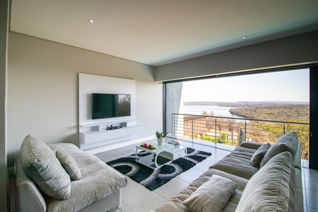 This property features a dedicated study room, ideal for work or leisure. Enjoy a well-appointed bar area for entertaining guests and a modern kitchen equipped with contemporary amenities. Relish the stunning views from the balcony overlooking the green zone and Roodeplaat Dam, offering direct water access. Additional amenities include a scullery, pantry, domestic room, and bathroom.