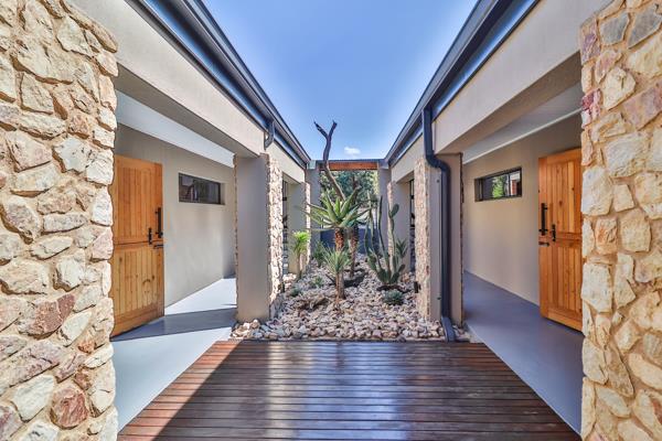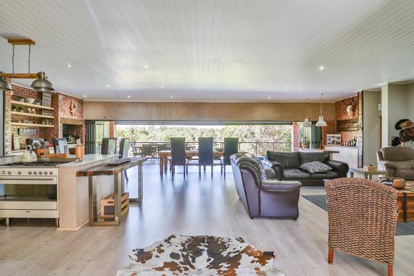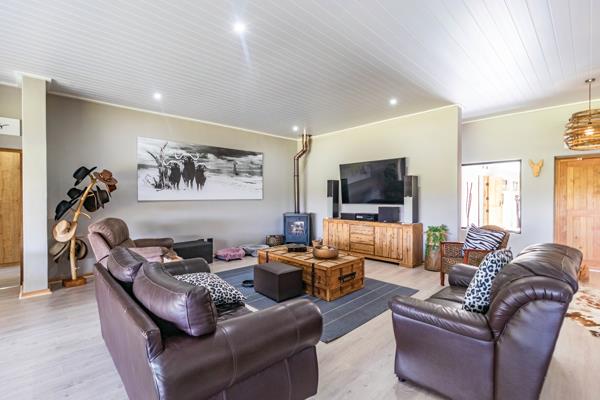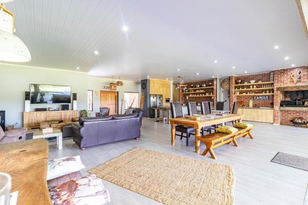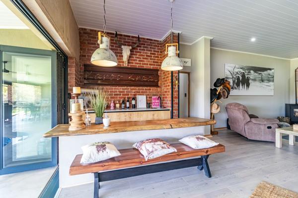 Quality takes center stage in this home, with the finest finishes contributing to an overall aesthetic of opulence. The low-maintenance cemcrete flooring guides residents through a spacious kitchen equipped with a separate scullery, laundry, and pantry. Tailored for entertainment, the house boasts a generously-sized covered patio, complete with a built-in braai, a swimming pool, and an expansive dining and bar area.