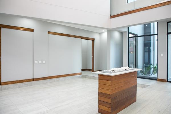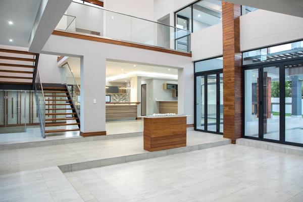 From the moment you enter, youre welcomed by expansive open-plan living areas with double-volume ceilings and seamless indoor-outdoor flow. The home is designed for modern living flooded with natural light through full-height glass doors and windows overlooking the manicured garden and sparkling pool.