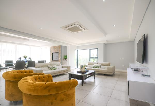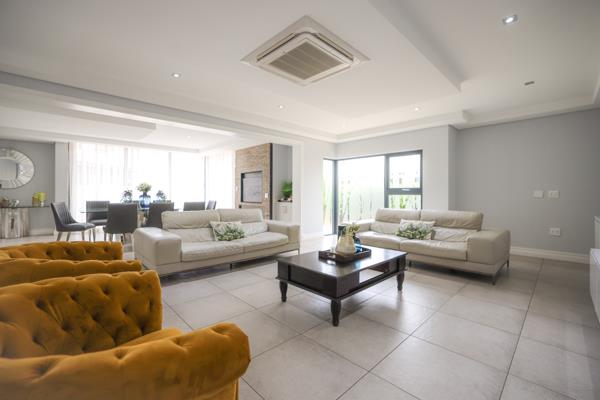 Climate control is handled with precision thanks to LG central air conditioning, ensuring year-round comfort throughout the home. Smart geysers add energy efficiency and convenience, reflecting the homes modern, tech-savvy design.