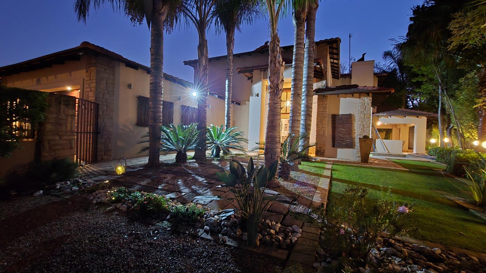 The private garden creates an authentic retreat feel, complete with palm trees and a black marblelite pool. An expansive outdoor entertainment area includes a boma and patio, both capable of being enclosed with awnings to suit all-weather enjoyment.