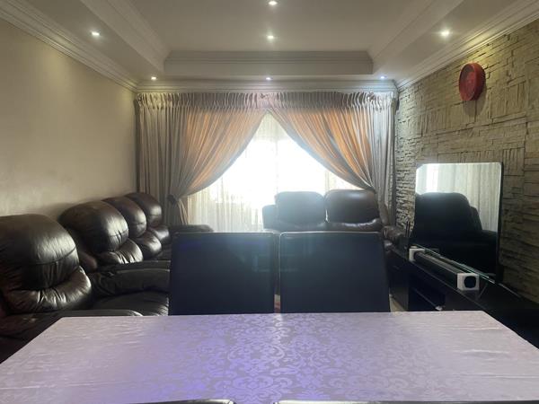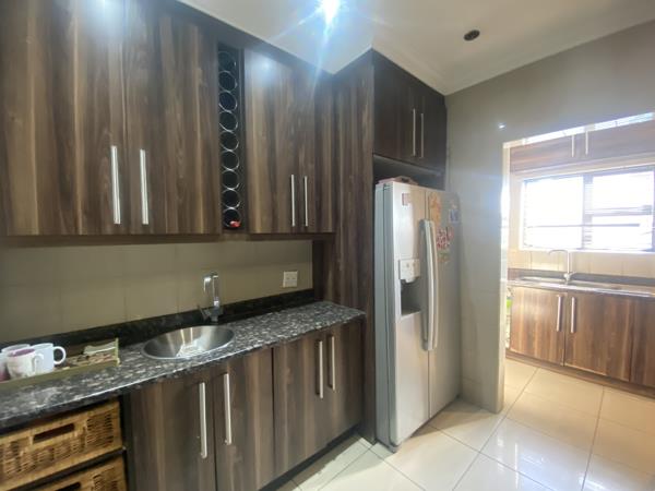 Great flow between the airy dining- and reception areas and modern kitchen, which leads to the undercover entertainment area, sparkling pool and low-maintenance established garden. The kitchen is impeccably neat and well-equipped with ample space for appliances, gas hob and a separate scullery.