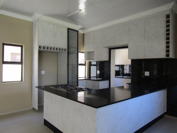 Step into a beautifully designed cosy lounge with a gas fireplace, perfect for intimate evenings, and an additional versatile room ideal for home office with sliding doors opens to the garden.The open-plan living and dining areas flow seamlessly into a modern kitchen, complete with a centre island, gas stove, ample storage, a separate scullery, and a walk-in pantry a dream for any home chef. Large sliding doors open onto a covered patio, sparkling pool, and built-in braai area, perfect for outdoor living.
