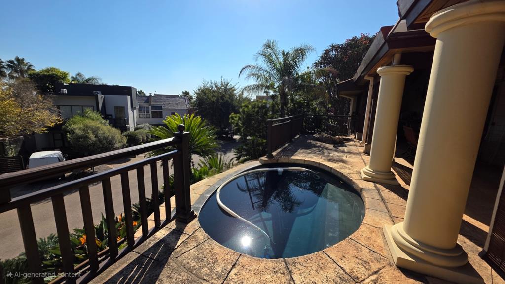 Indulge in the epitome of sophistication with immaculate finishes throughout, including elegant sandstone floors and a custom-designed mahogany kitchen featuring granite countertops, an Ilve double oven, and a gas stove. Boasting five large, flowing reception areas, this home provides ample space for relaxation and entertaining. A separate scullery, laundry/ironing room, and large pantry ensure practical convenience.