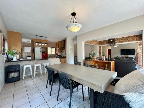The outdoor area is a highlight of the home, designed for both entertaining and relaxation. The covered patio with a built-in braai overlooks the sparkling swimming pool and well-manicured gardenan idyllic setting for weekend gatherings or quiet family time. The garden offers ample space for children to play or for green-fingered homeowners to enjoy gardening.