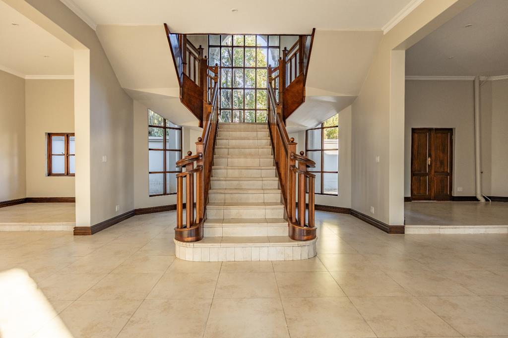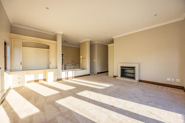 This expansive family home in the prestigious Silver Lakes Golf Estate offers luxurious living with ample space and top-tier finishes. The welcoming entrance hall flows into a versatile room that can serve as a first bedroom or study, followed by a generous dining area ideal for family meals and gatherings. The ground floor also features a stylish guest bathroom with a shower, a wine cellar, and a spacious living area with two fireplacescreating a warm and inviting atmosphere. A large, well-equipped kitchen with a separate scullery caters to every culinary need, while a downstairs bedroom adds extra convenience.