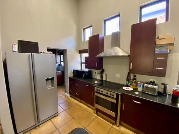 The inviting living area boasts a stylish gas fireplace and large aluminum doors that flood the space with natural light. Step outside to the covered patio with a built-in braai perfect for family gatherings and summer barbecues and take a refreshing dip in the sparkling pool. Additionally, theres a versatile extra room that can serve as an office, study, or storage space to suit your needs.