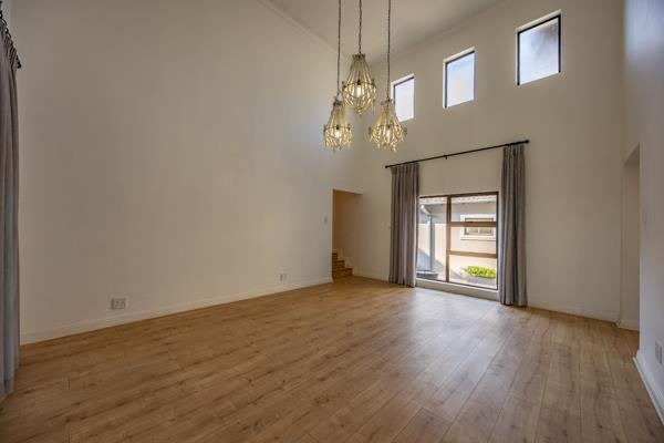 Entertainment is effortless with an enclosed braai room fitted with sliding doors leading out to the lush garden and pool areaideal for family gatherings and weekend relaxation. The ground floor hosts two bedrooms, including the luxurious main suite with garden access, a full en-suite bathroom, air-conditioning, and ample cupboard space. A guest suite with its own bathroom and a guest toilet add convenience.