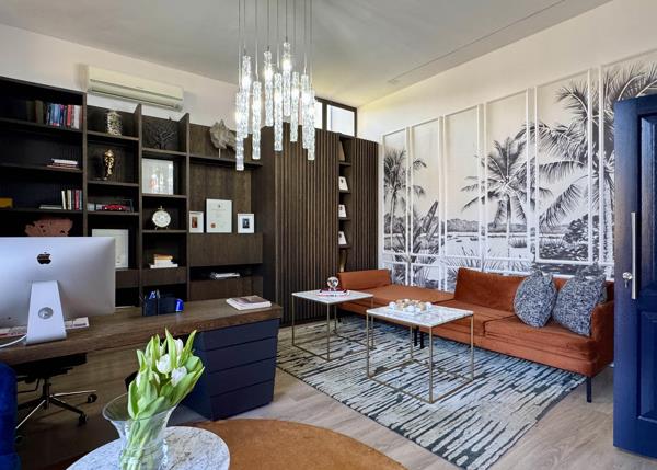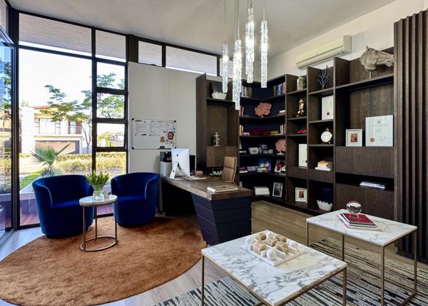 Positioned at the entrance, the study is set slightly apart from the main living areas, offering focus and privacy for work or reflection. Large windows bring in soft natural light, while custom-built cabinetry provides both functional storage and refined craftsmanship to create a space that is as composed as it is practical.