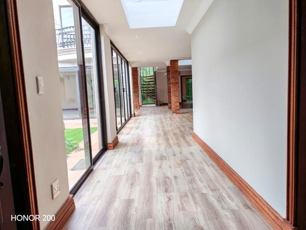 A graceful curved staircase leads to the upper level, where youll find three exceptionally spacious en-suite bedrooms. Each room offers generous proportions, its own private balcony, built-in cupboards, air conditioning, and elegant laminated flooring that continues throughout the home. These bedrooms provide comfort, privacy, and the kind of space families truly appreciate.