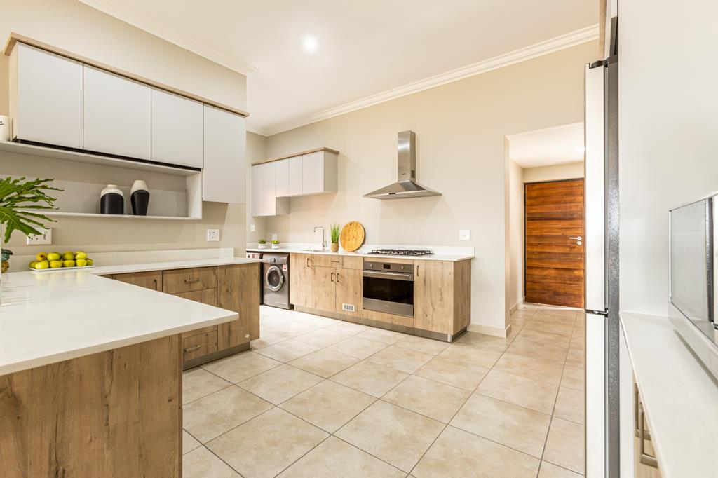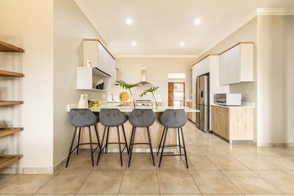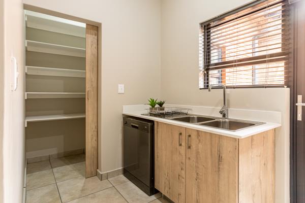 Large open plan kitchen fitted with quartz counter tops, ample cupboards & work space with a separate scullery area & pantry.