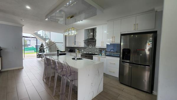Each of the four spacious bedrooms benefits from its own en-suite bathroom, ensuring privacy and comfort for all residents. An additional guest toilet and a dedicated study provide further convenience. The bathrooms feature modern finishes, including floating vanities and contemporary tiling. Practical amenities such as a scullery, pantry, laundry room, and ample storage are thoughtfully integrated.