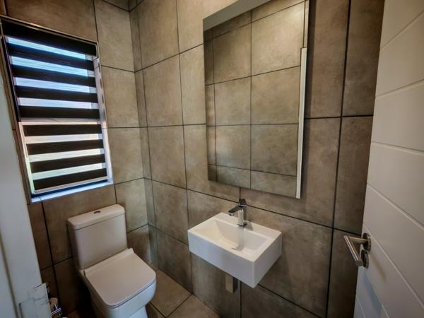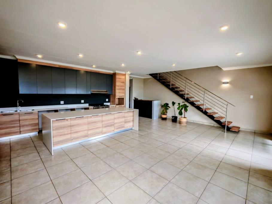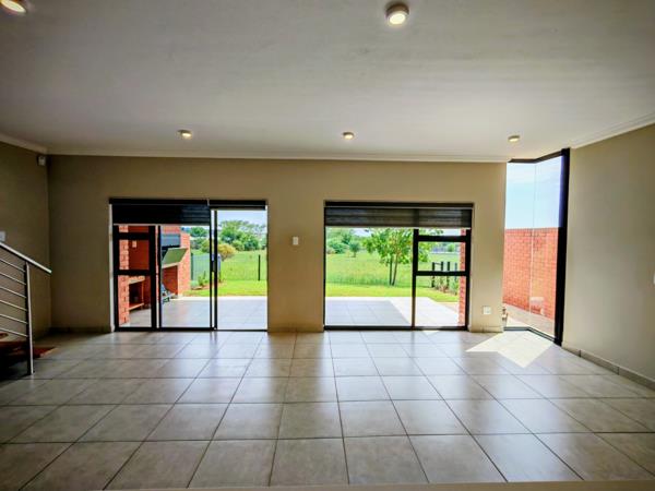 The living areas open up with aluminium sliding doors to an under cover patio with a buit in braai and a view of the green belt. Sometimes wild game come and graze right in front of the unit. This is a luxury only a few units within the complex are privileged to enjoy.